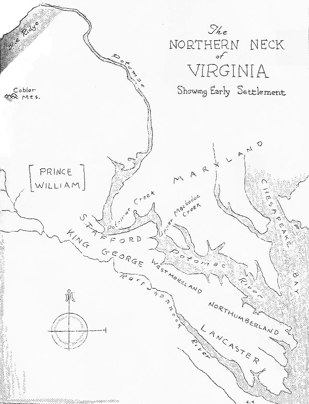 Ten years later, on April 15, 1667, Governor William Berkeley made a grant to Edward of 337 acres of land on the south side of the Upper Machotick River in Stafford (now King George) county for the transportation of seven persons into the colony. Thos creek rises near the present village of Ducat and empties into the Potomac at Neill.