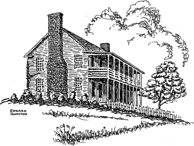 The old home of Thomas Humston in Shenandoah County, Virginia, stands about one mile south of Edinburg overlooking the North Fork of the Shenandoah River. Built about 1815, the house has withstood the vicissitudes of time; it is now weathered but sturdy after 165 years.